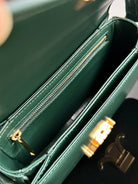 • Color: Green leather, Gold hardware