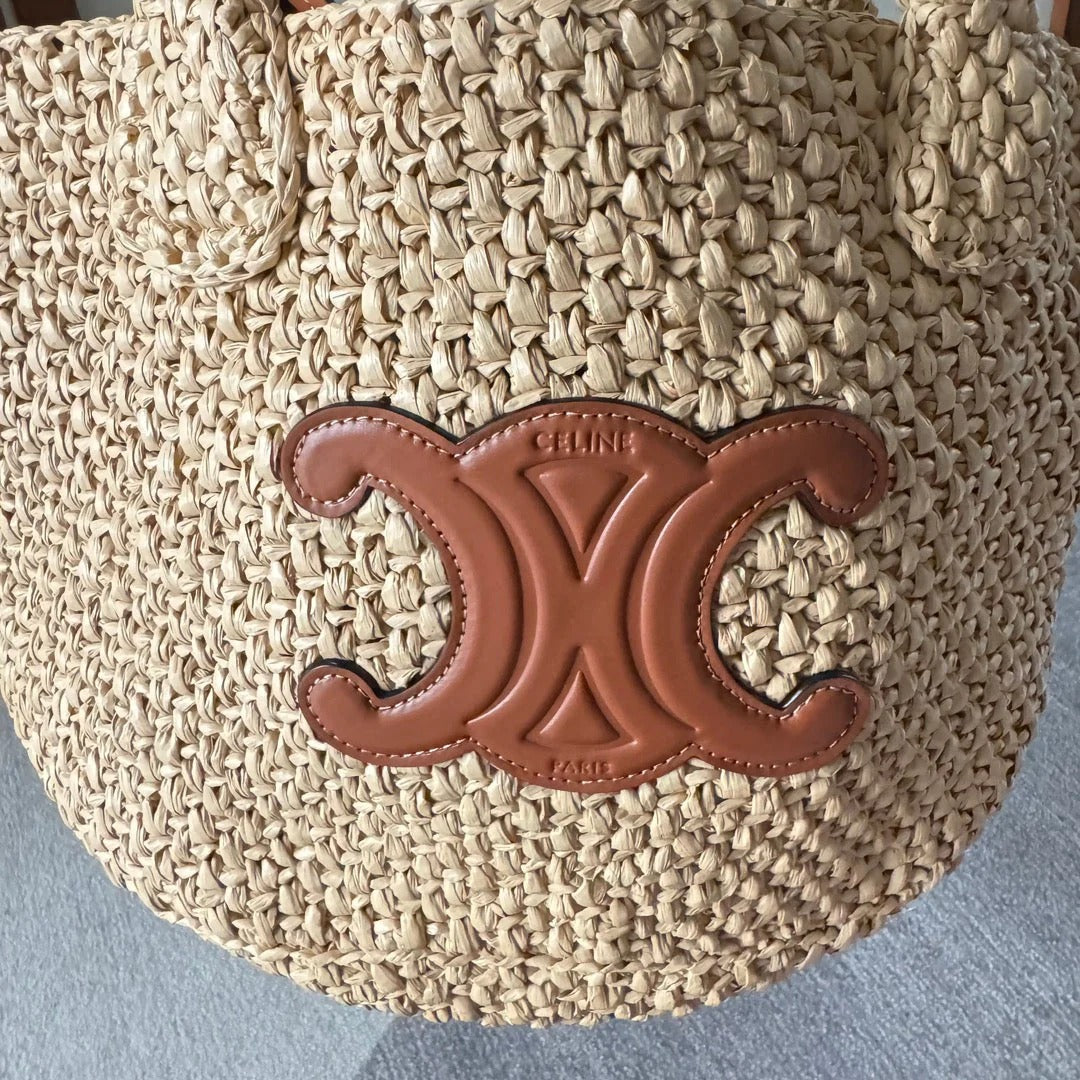 Tote Bag Celine Triomphe 23 In Beige Raffia