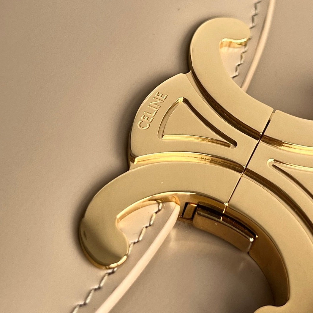 TRIOMPHE 15 Cream Gray Calfskin Handbag