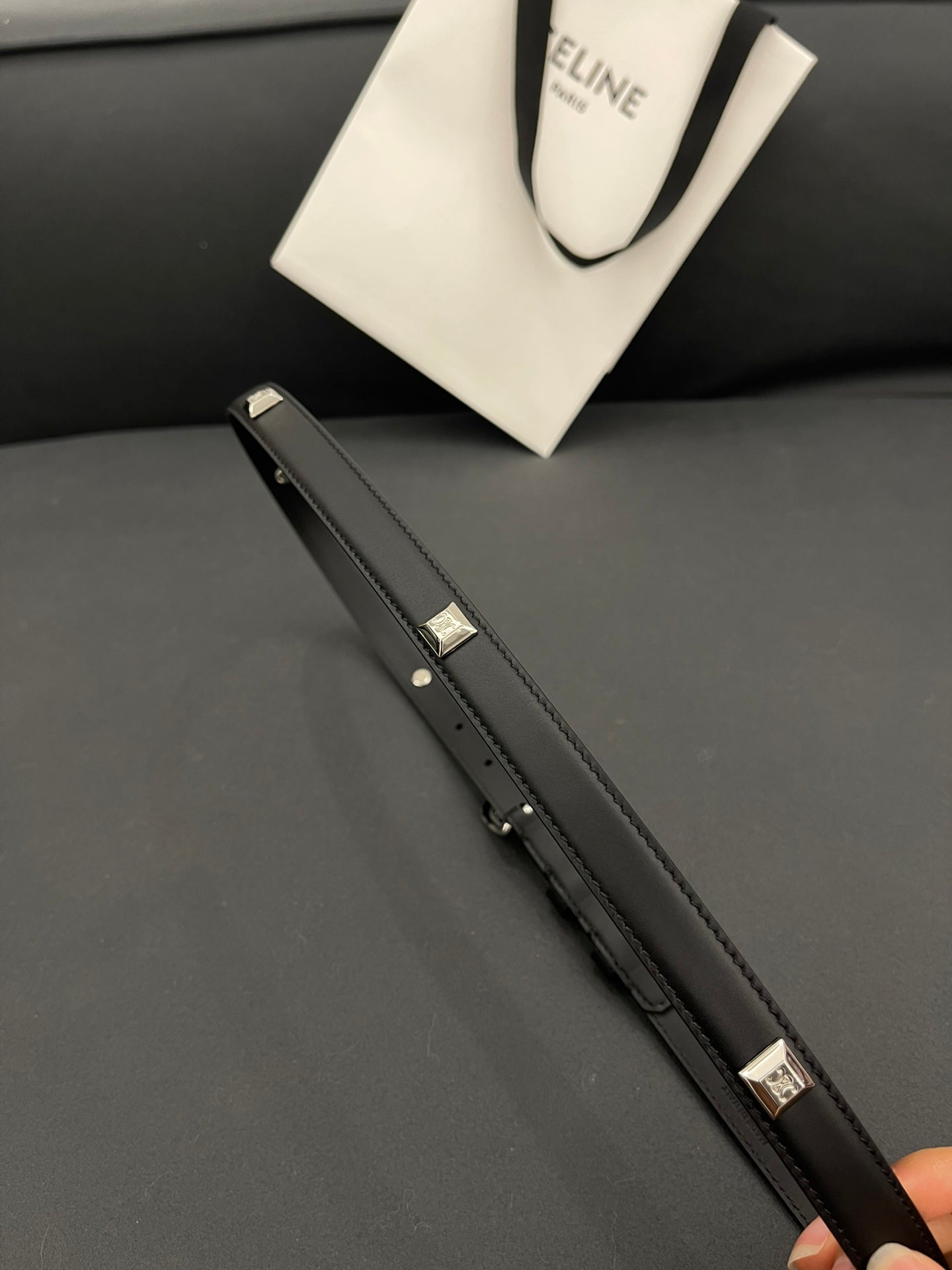 CL SMALL 18 MM TRIOMPHE BELT IN TAURILLON BLACK LEATHER SILVER HARDWARE