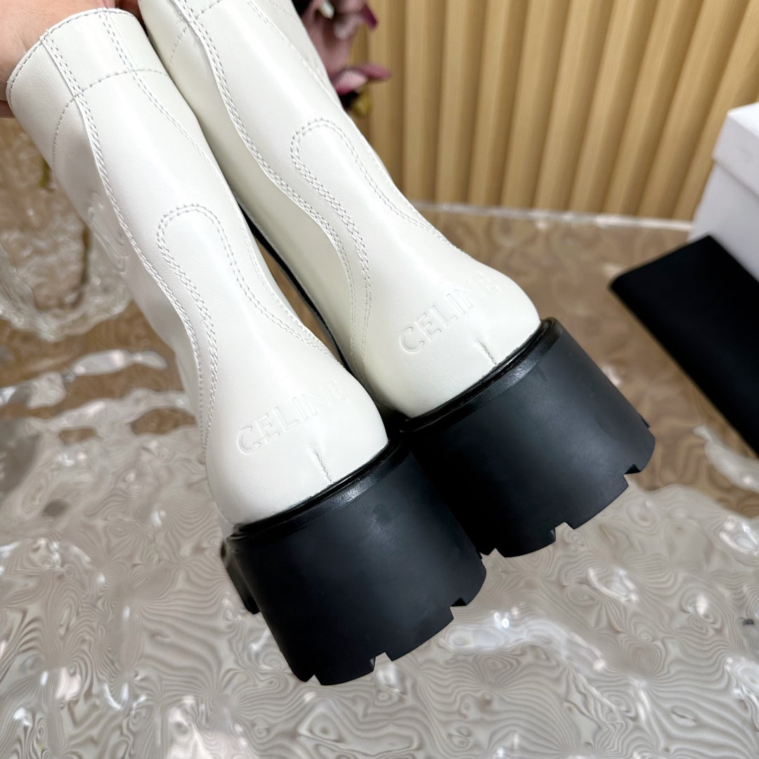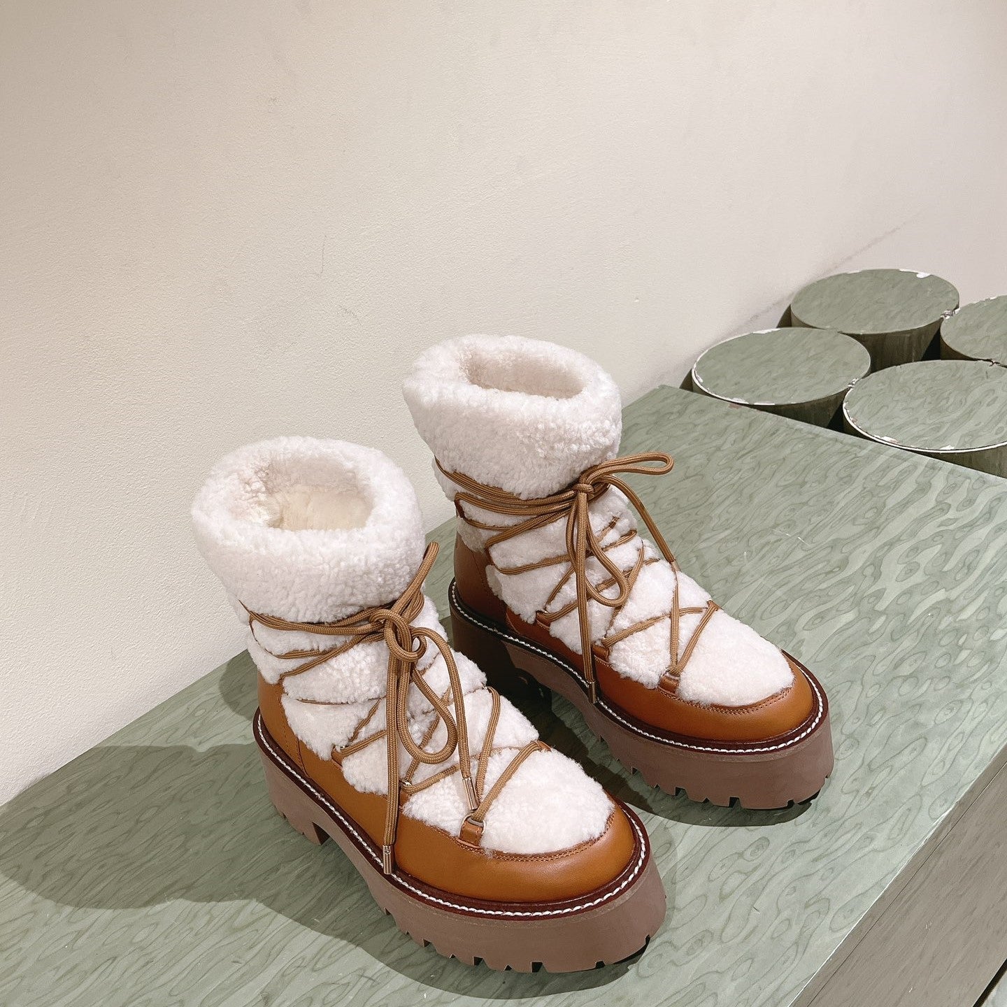 CELINE Bulky Lace-Up Boot White Brown Shearling And Calfskin 452715