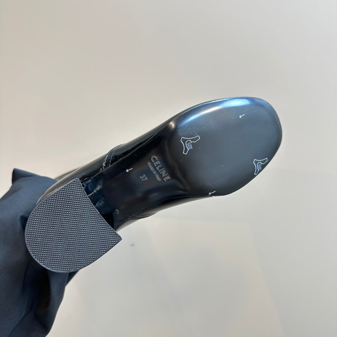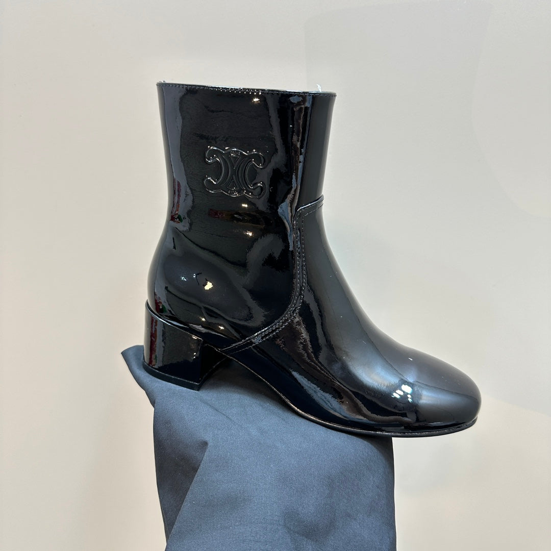 CELINE Les Bottes Triomphe Zipped Boot Black Patent Calfskin 452697