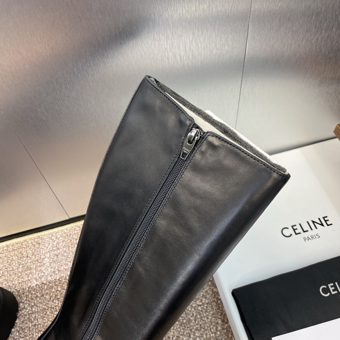 CELINE Les Bottes Triomphe Zipped Long Boot Black Patent Calfskin 452696