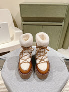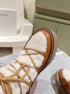 CELINE Bulky Lace-Up Boot White Brown Shearling And Calfskin 452715