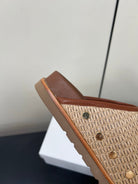 Celine 25 Straw Rivet Birkenstock Slippers Beige Brown Raffia woven Sheepskin