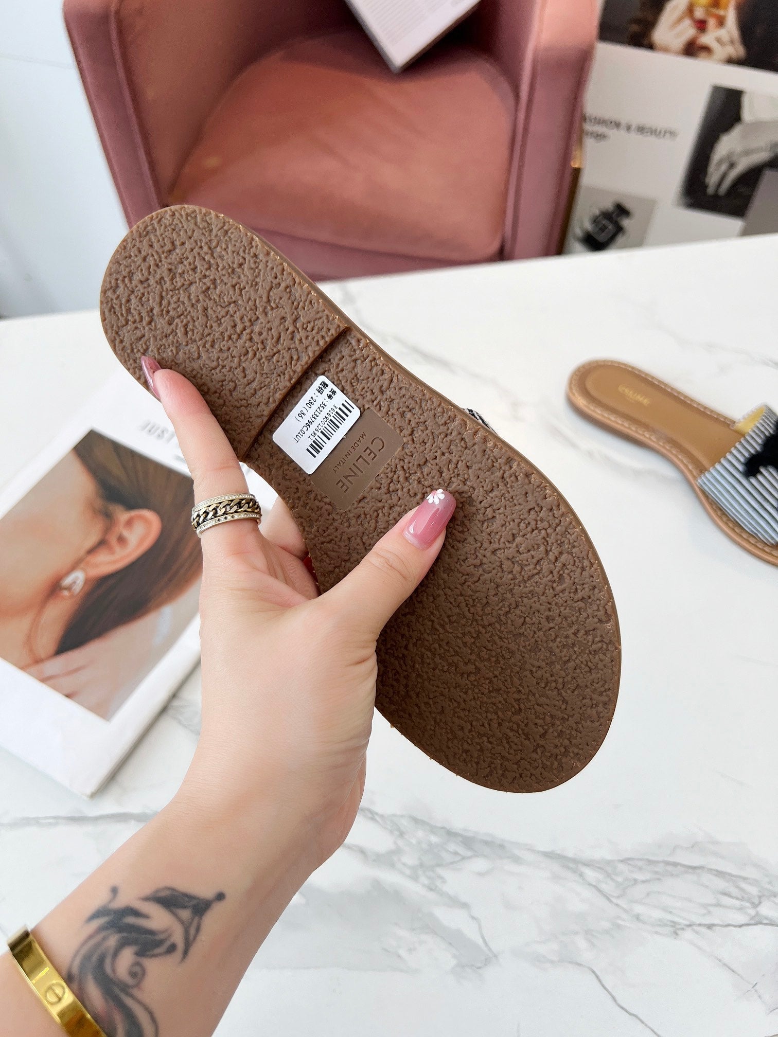 Celine 25C Slippers Black Fabric with Calfskin 238168