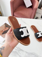 Celine 25C Slippers Black mix White Fabric with Calfskin 238151