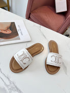 Celine 25C Slippers White Fabric with Calfskin 238157