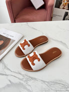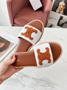 Celine 25C Slippers White mix Brown Fabric with Calfskin 238153