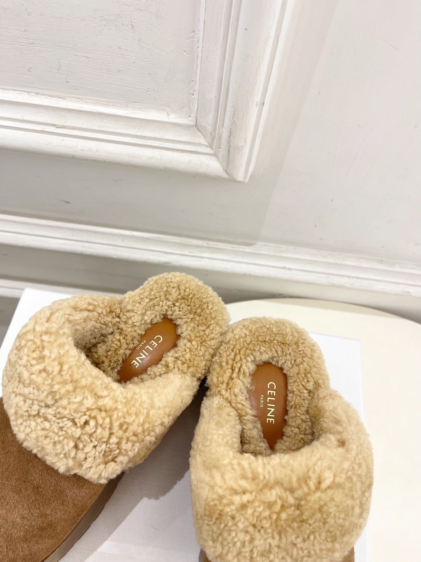 CL 25s Dana Wedge Mule 80mm Light Brown Beige Suede Calfskin & Shearling