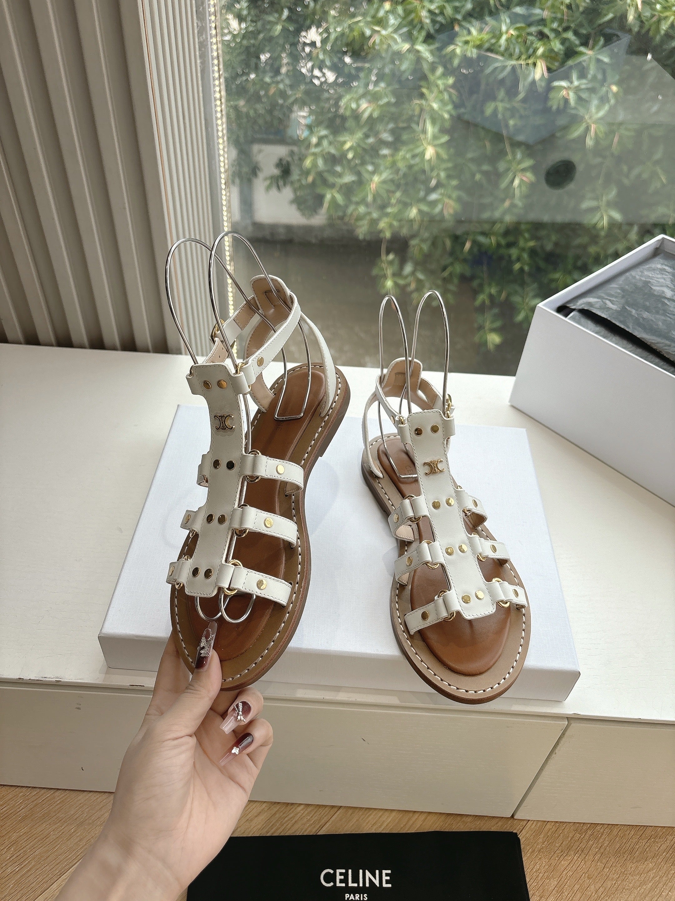 CL Lympia Gladiator Sandal In White Tan Calfskin 319898