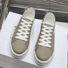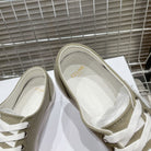 JANE SNEAKERS LOW LACE-UP WITH TRIOMPHE PATCH IN CANVAS AND CALFSKIN STONE GRAY/ WHITE LOGO