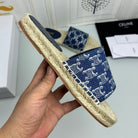 NEW FLAT FISHERMAN SLIPPERS NAVY BLUE COTTON CANVAS
