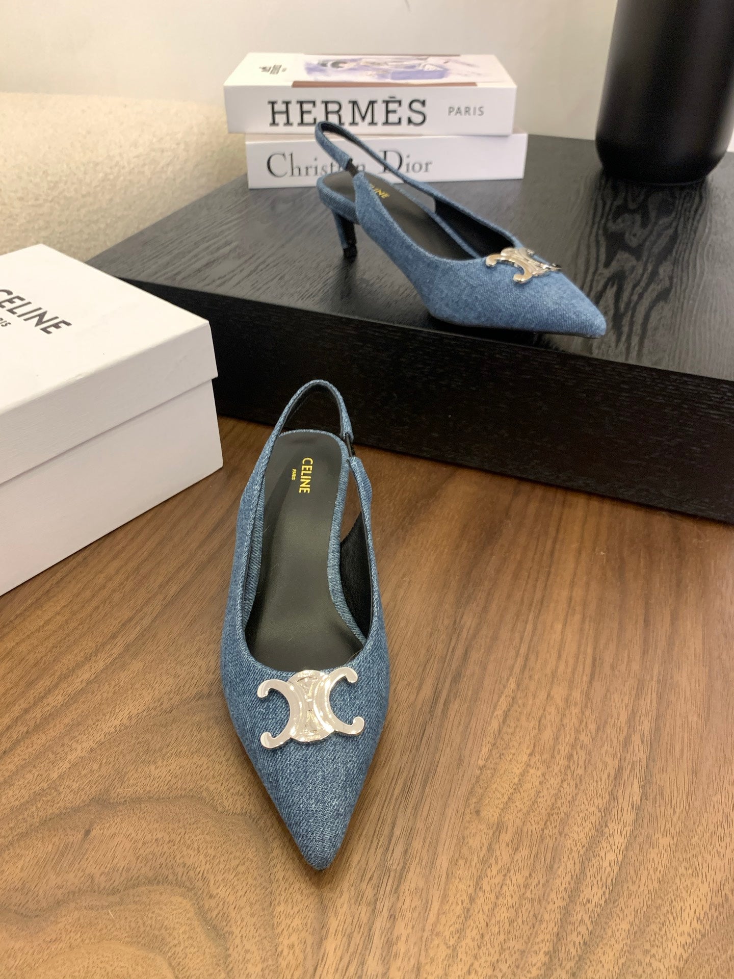 CL Alma Triomphe Slingback 50mm In Blue Denim 318794