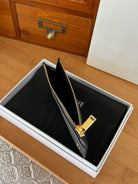 ESSENTIALS Zippered Compact Card Holder Black Cowhide