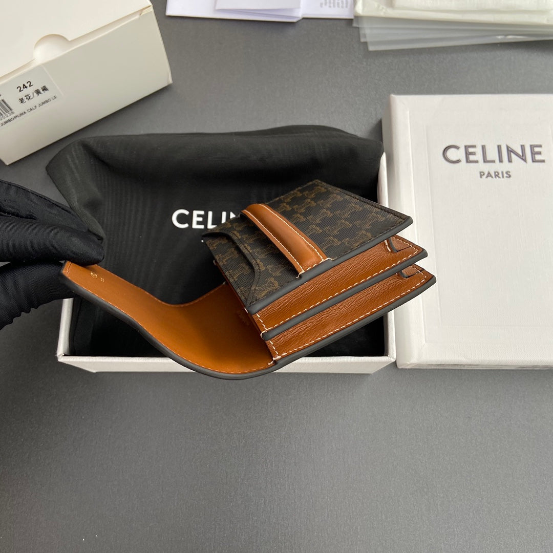 TRIOMPHE 24 Origami Business Card Holder Tan Canvas&Cowhile