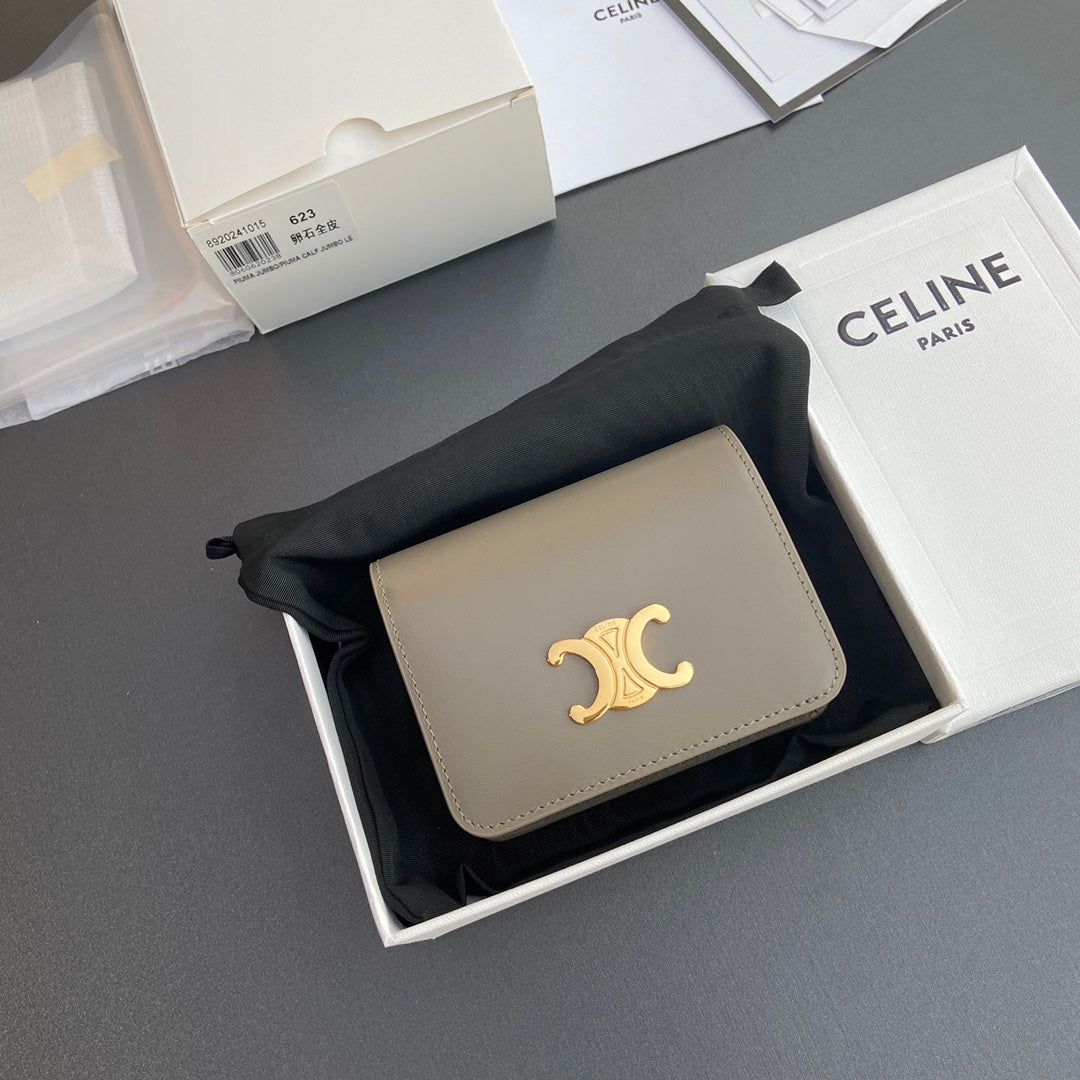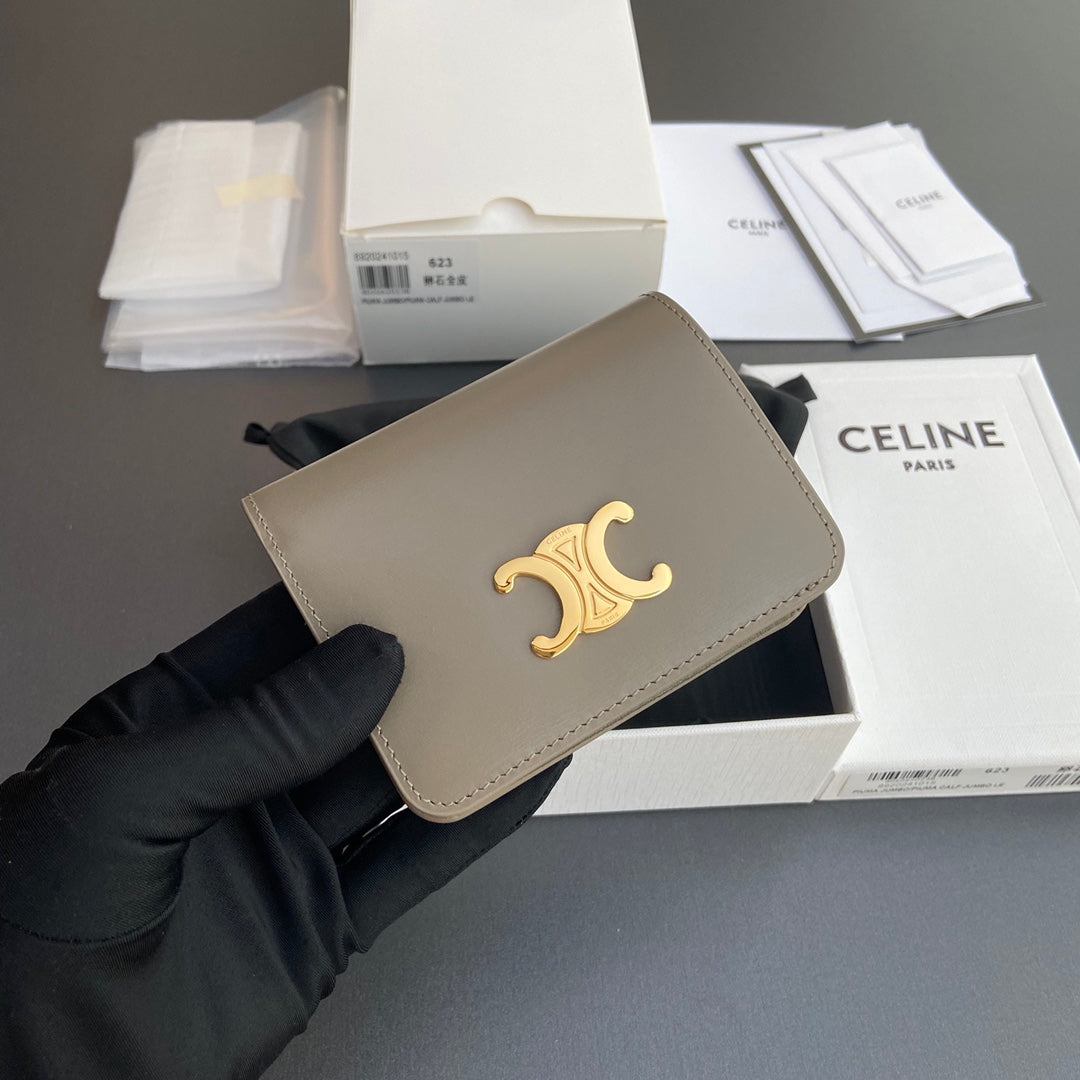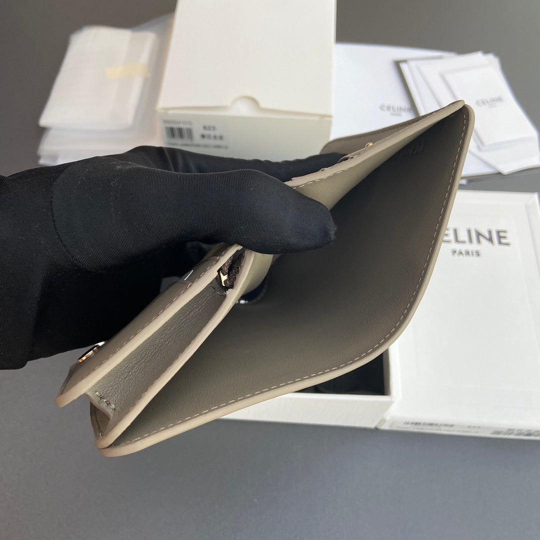 TRIOMPHE 622 Compact Wallet Modern Taupe Leather