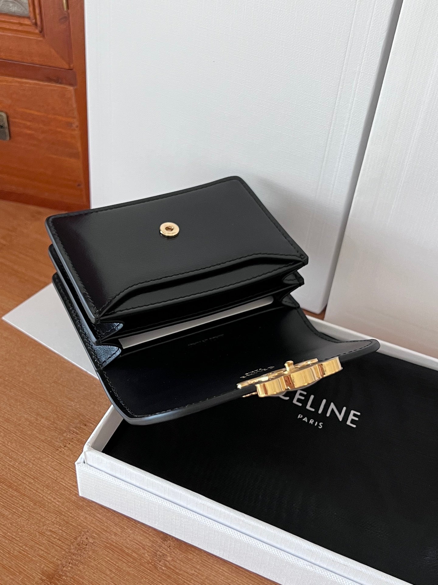 TRIOMPHE Business Card Holder Black Cowhide GHW