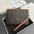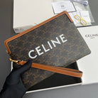 TRIOMPHE Celine Print Small Pouch Tan Cowhide&Canvas