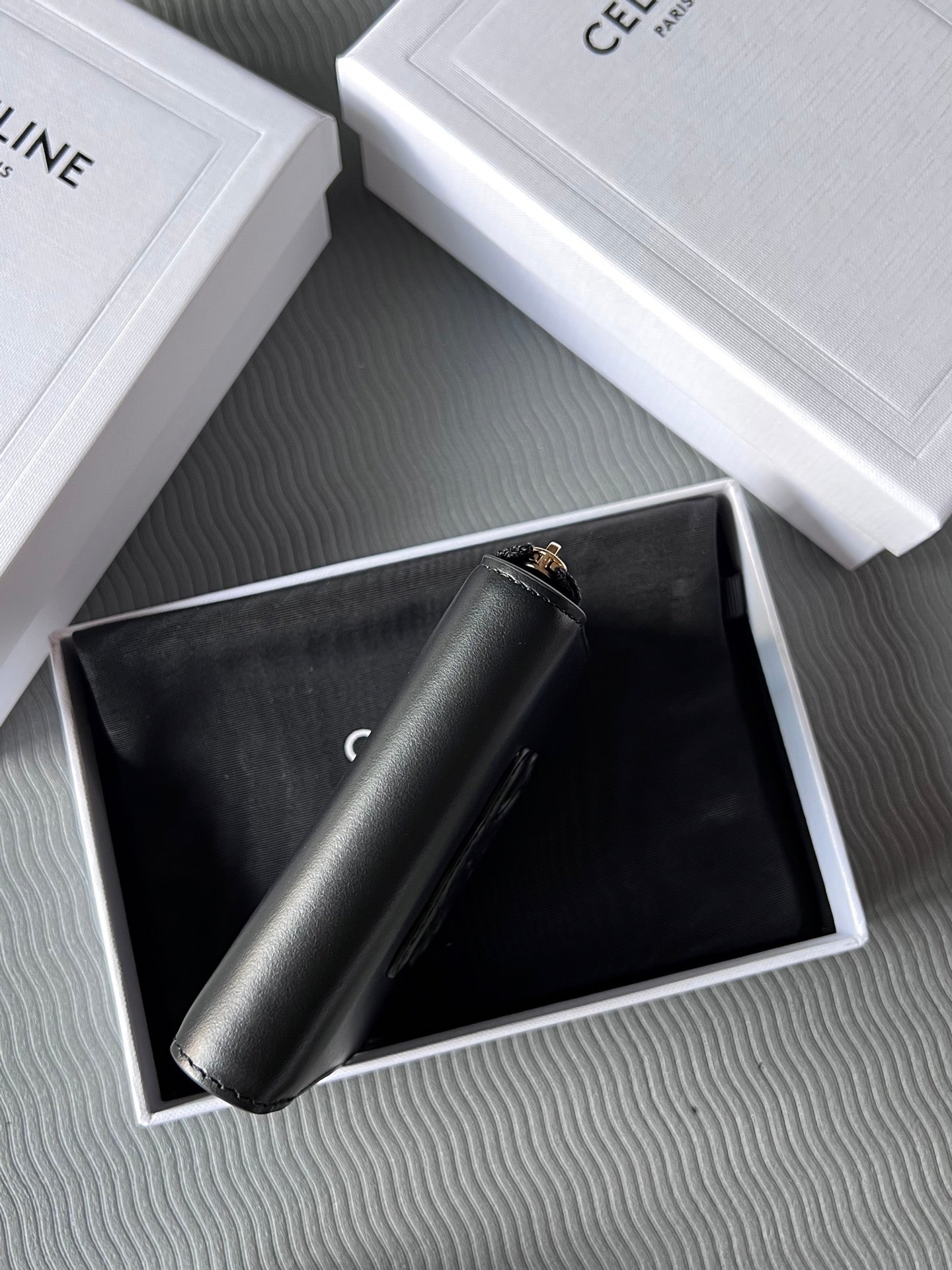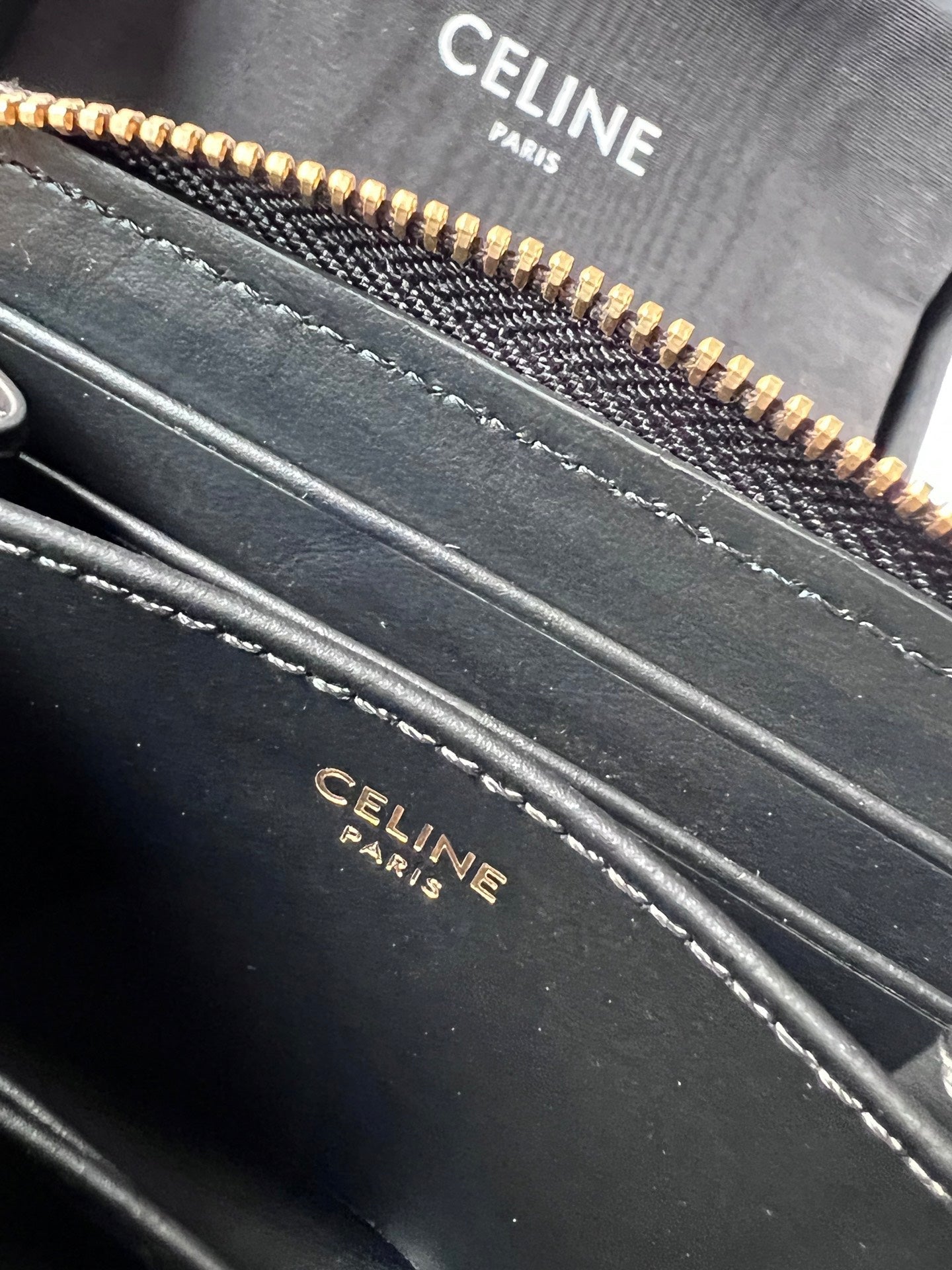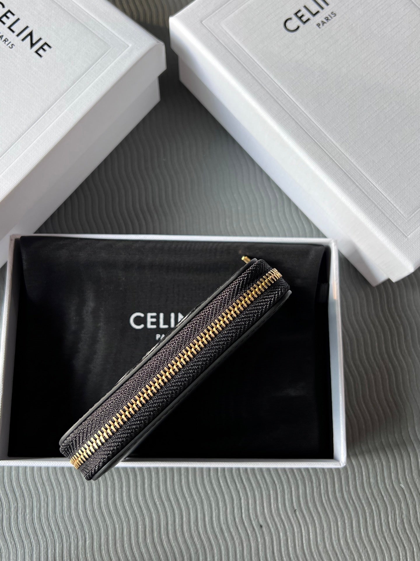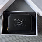 TRIOMPHE Compact Zipped Wallet Black Cowhide Leather