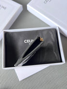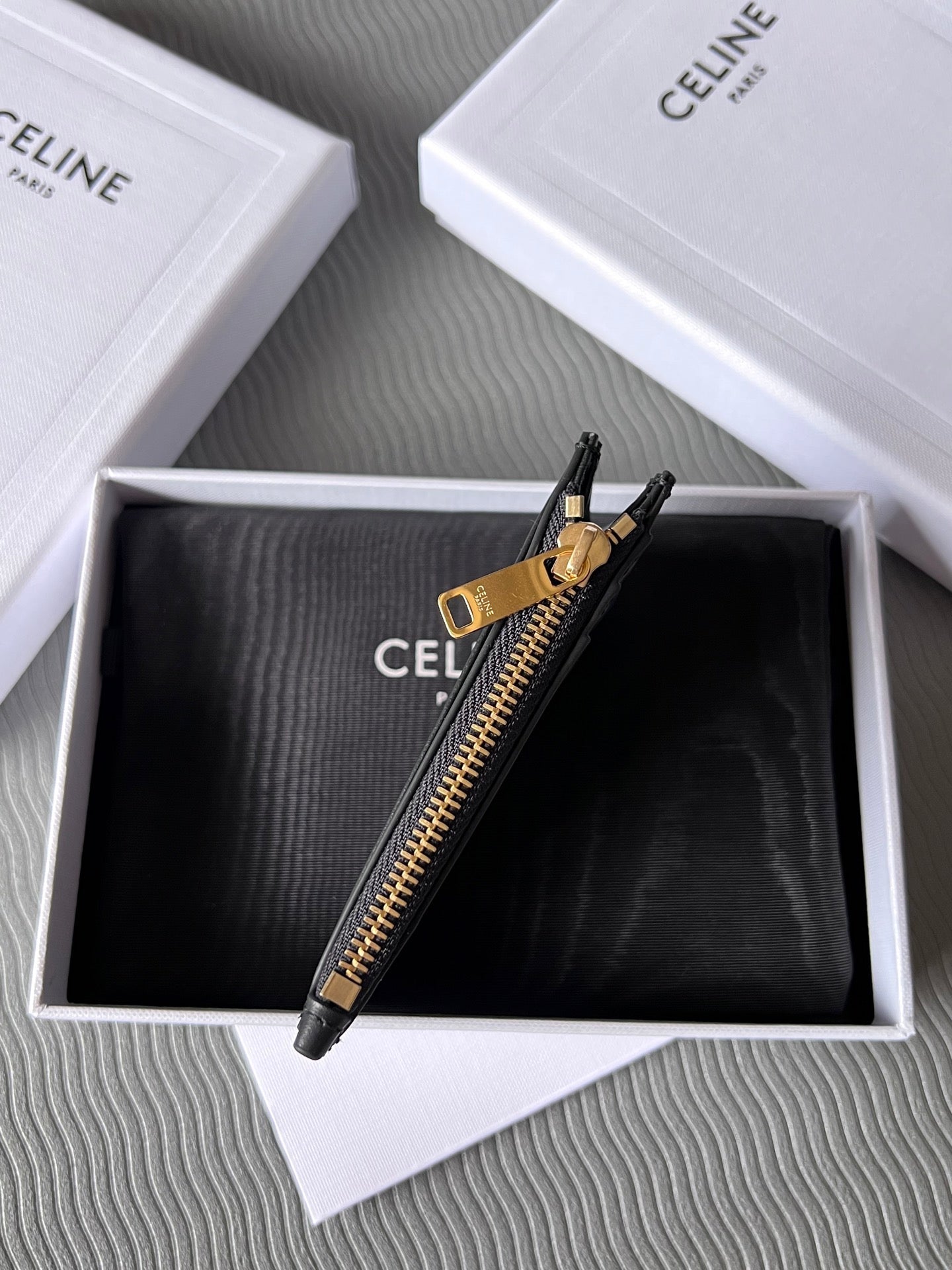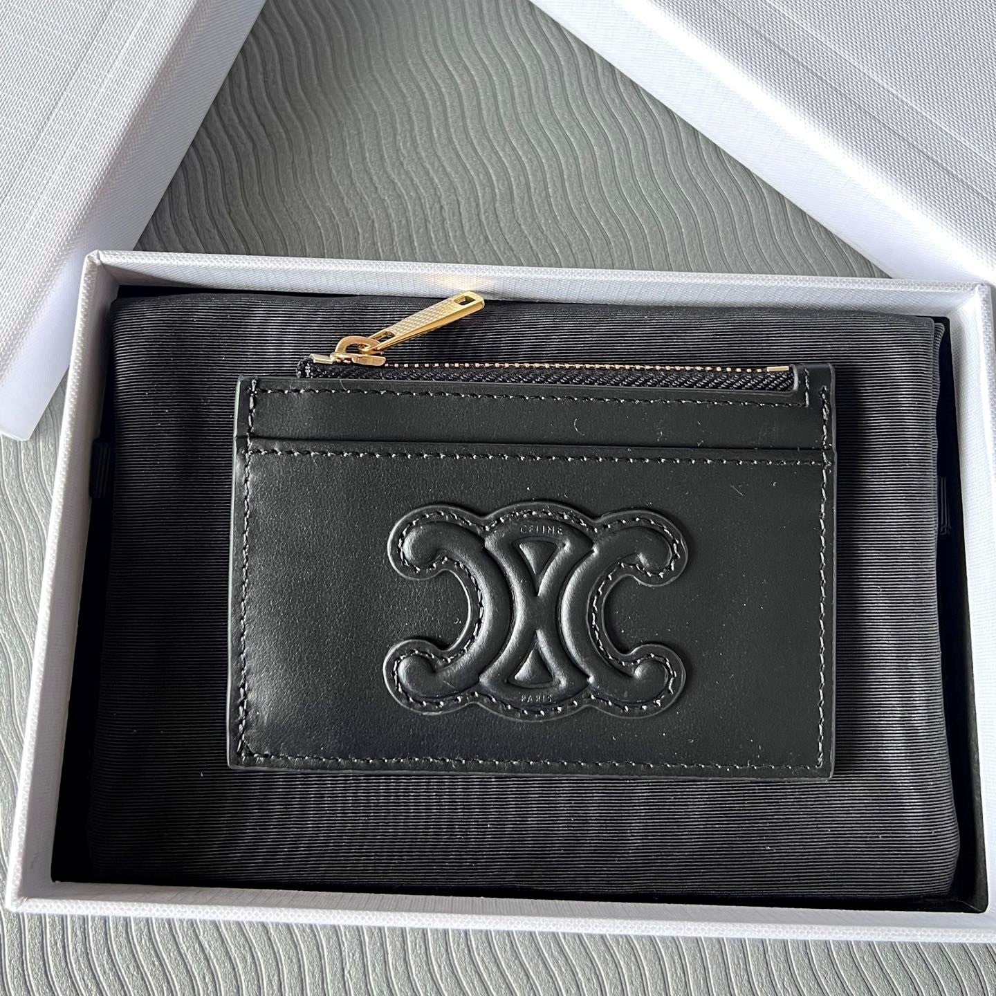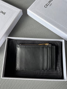 TRIOMPHE Zipped Card Holder Black Cowhide Leather