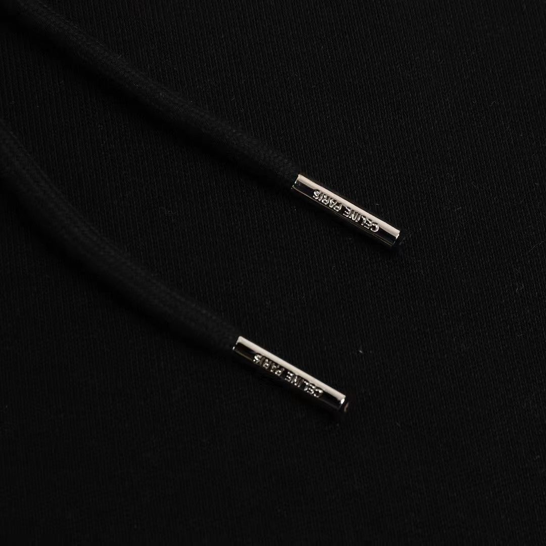 Celin Loose Hoodie Black Fleece White Logo