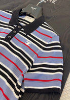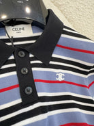Celine 2025 Striped Polo Shirt Blue Black White Cotton