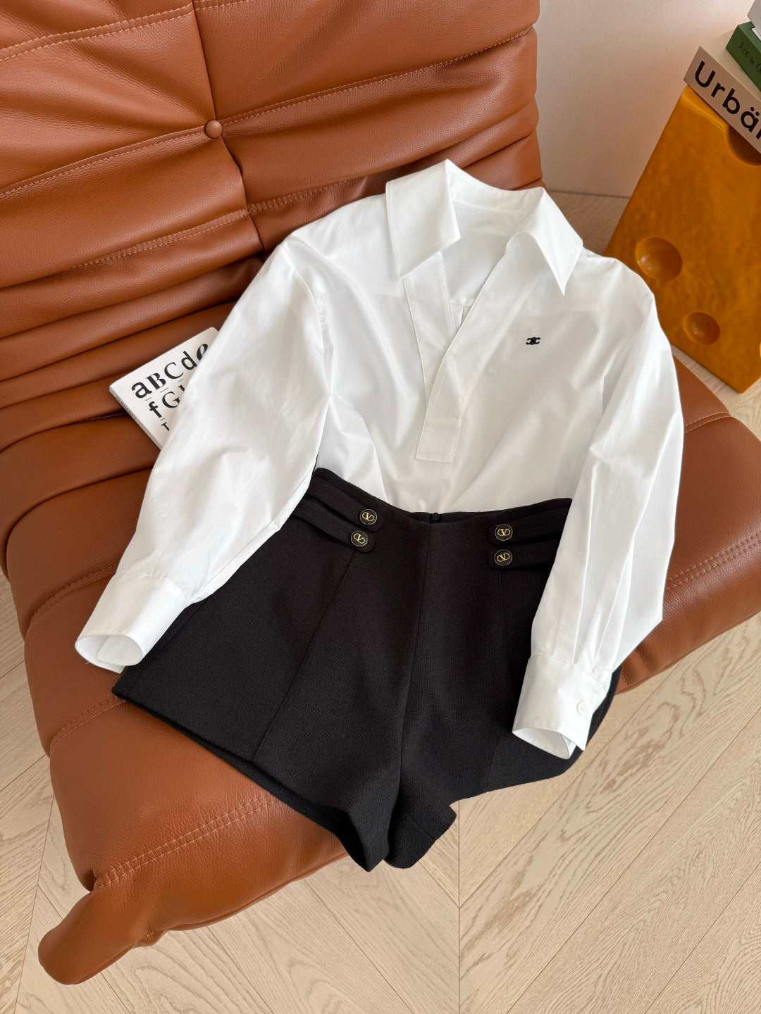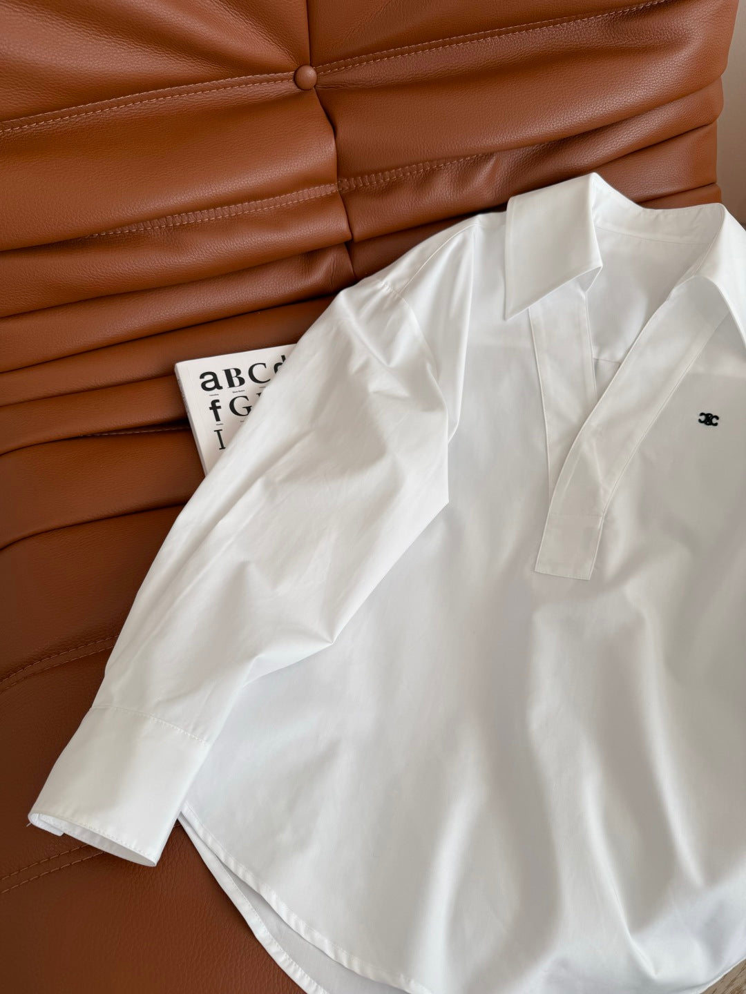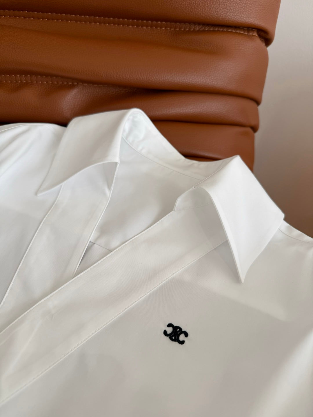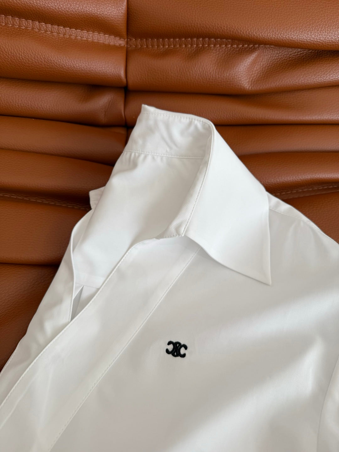 Celine 25 Arc de Triomphe Logo Embroidered V-neck Shirt White Cotton