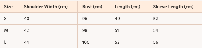 - Size : S,M,L
