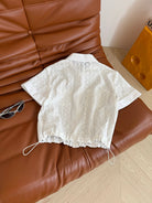 Celine 25 Hollow Wide Shoulder with Gold Metal Button White Cotton