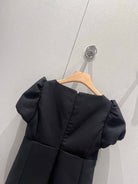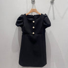Celine 25 Rhinestone Button Mini Dress Black Wool 220842