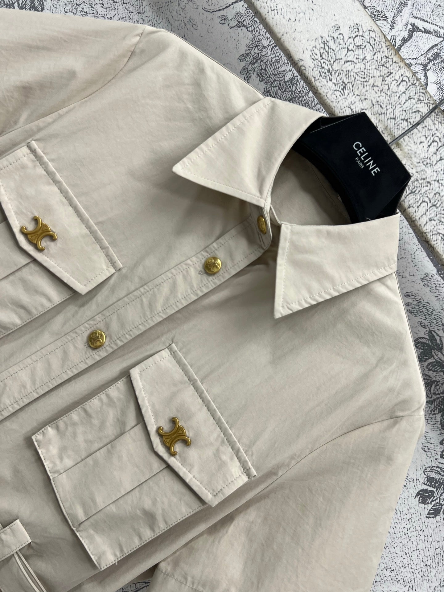 Celine 25 Short-sleeved Shirt Dress Beige Cotton