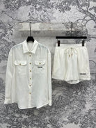 Celine 25 Suit Brown and White Linen Polyester
