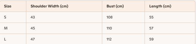 - For more information, please see the size guide below