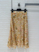 Celine Floral Long Skirt Light Beige Silk