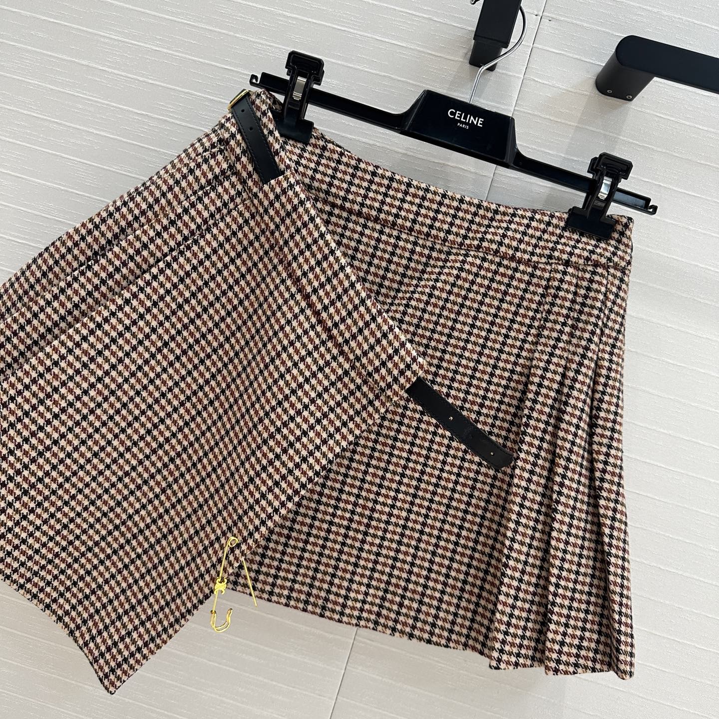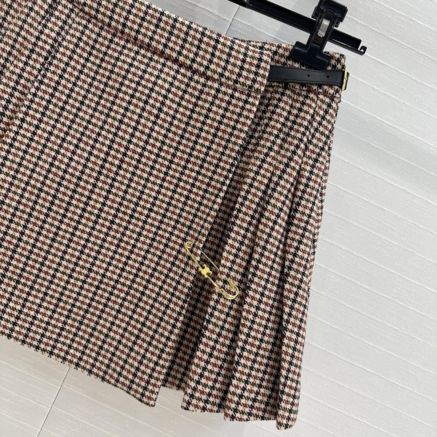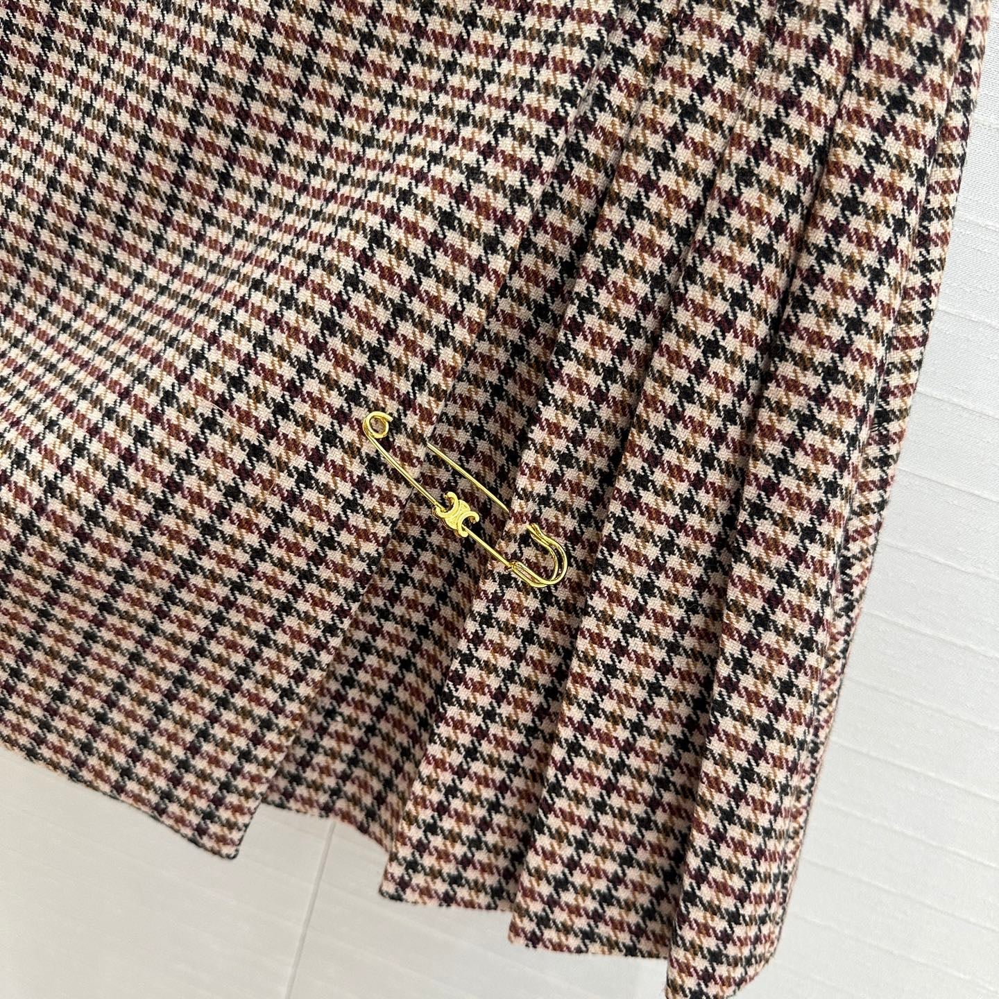 Celine Pleated Skirt Brown Wool Cotton Polyester