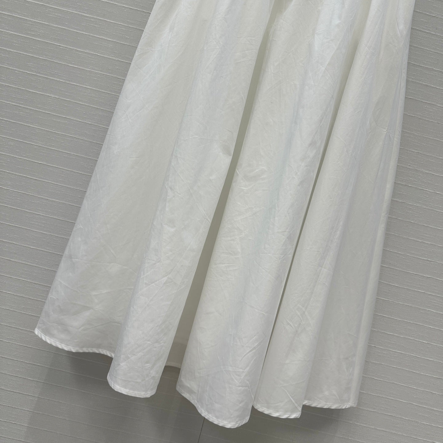 Celine 25 Arc de Triomphe Small Gold Button Pleated Dress White Cotton