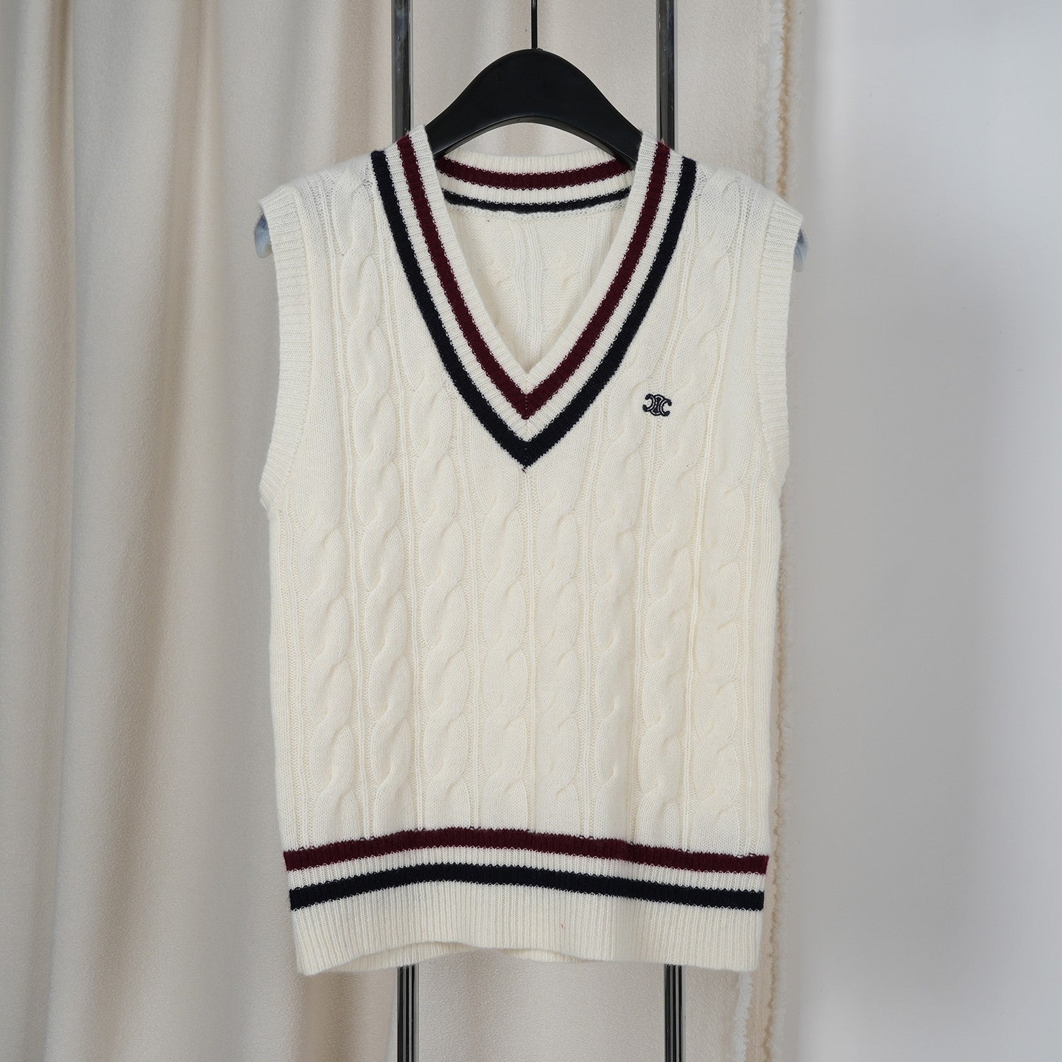 Celine 25 Knitted Vest White Wool Polyester 281498