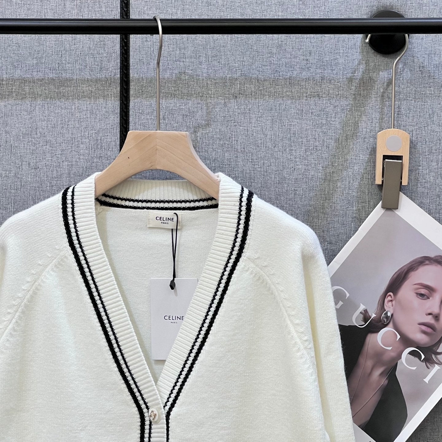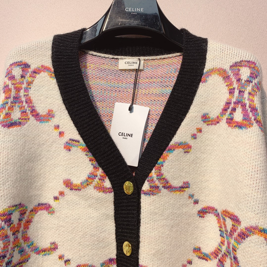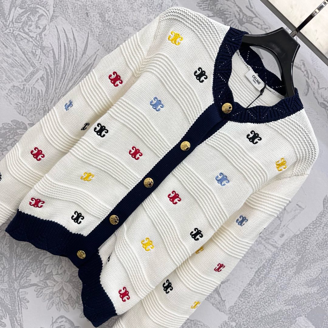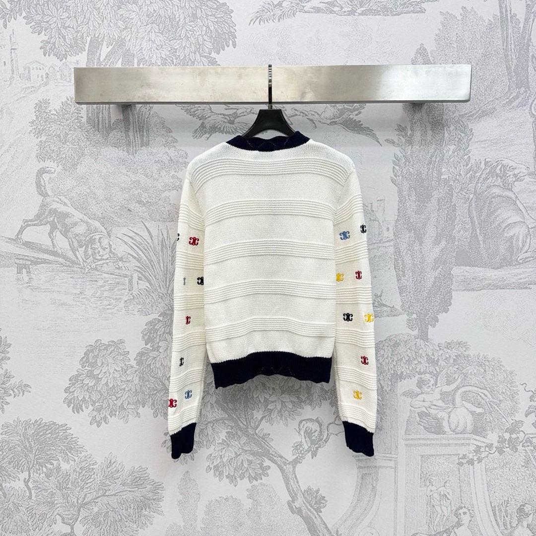 Celine 25 Striped Cardigan White Wool Polyester 281502
