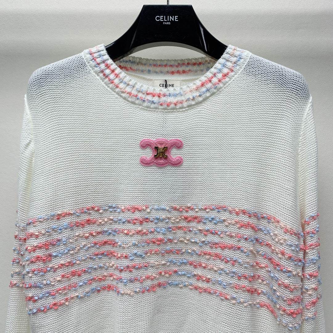 Celine 25 Striped Sweater White Wool Polyester 281500