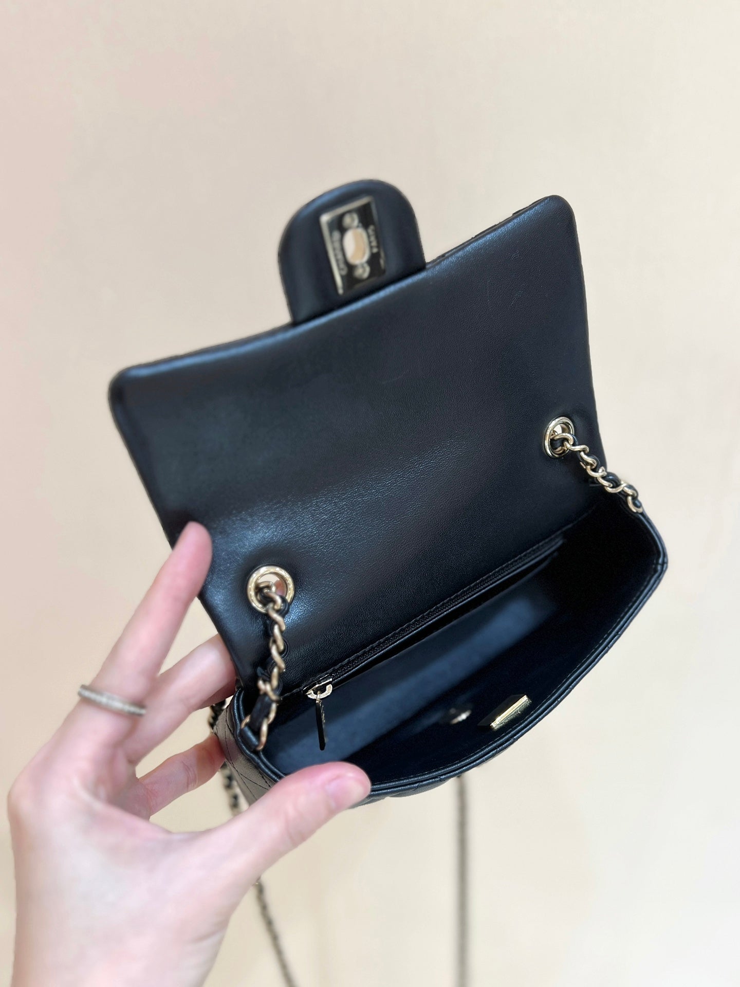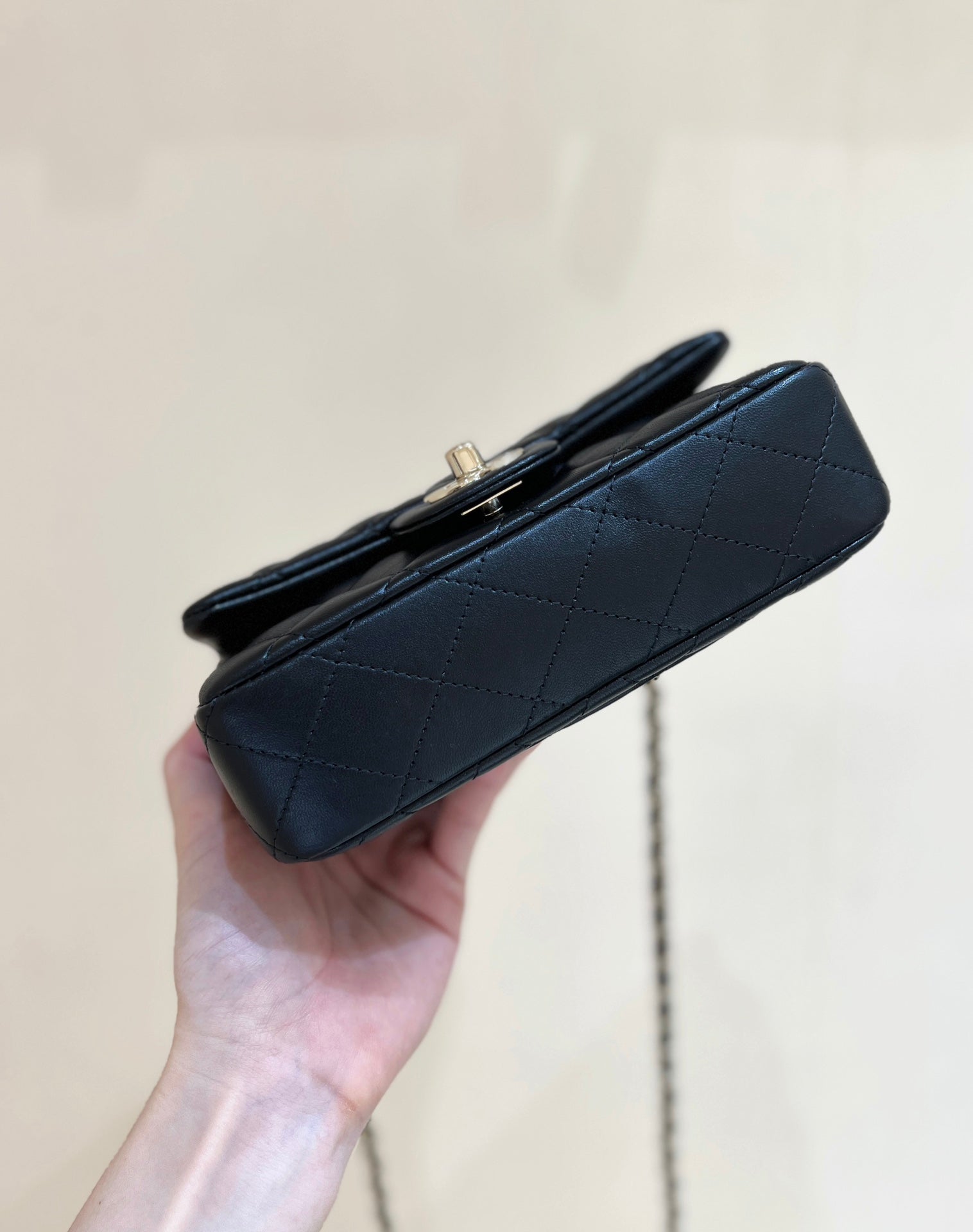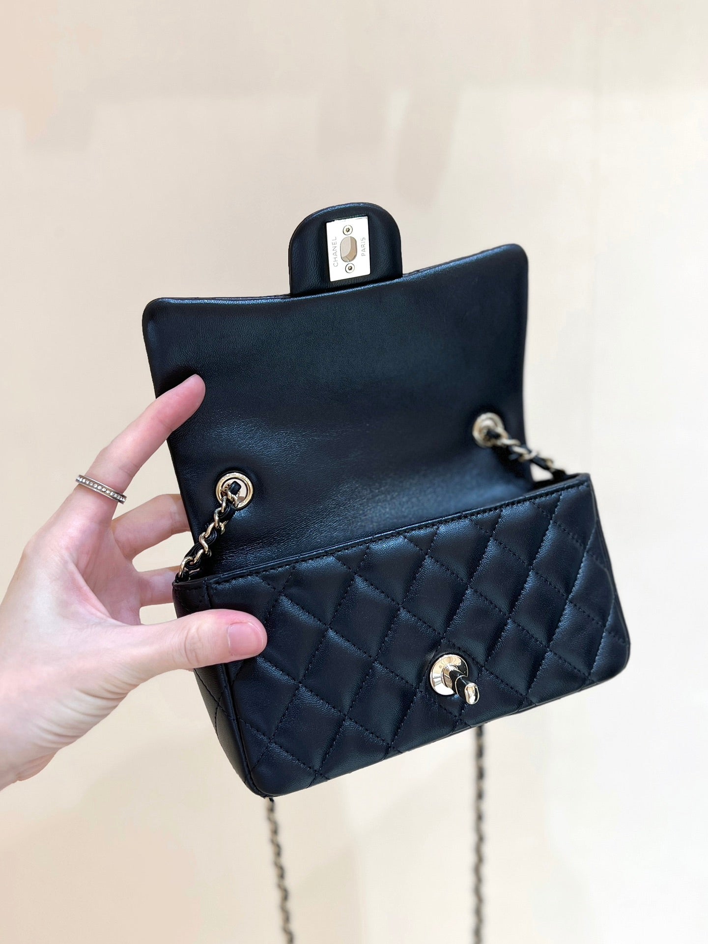 CC 24K Mini Flap Bag 18cm Black Lambskin Gold Hardware