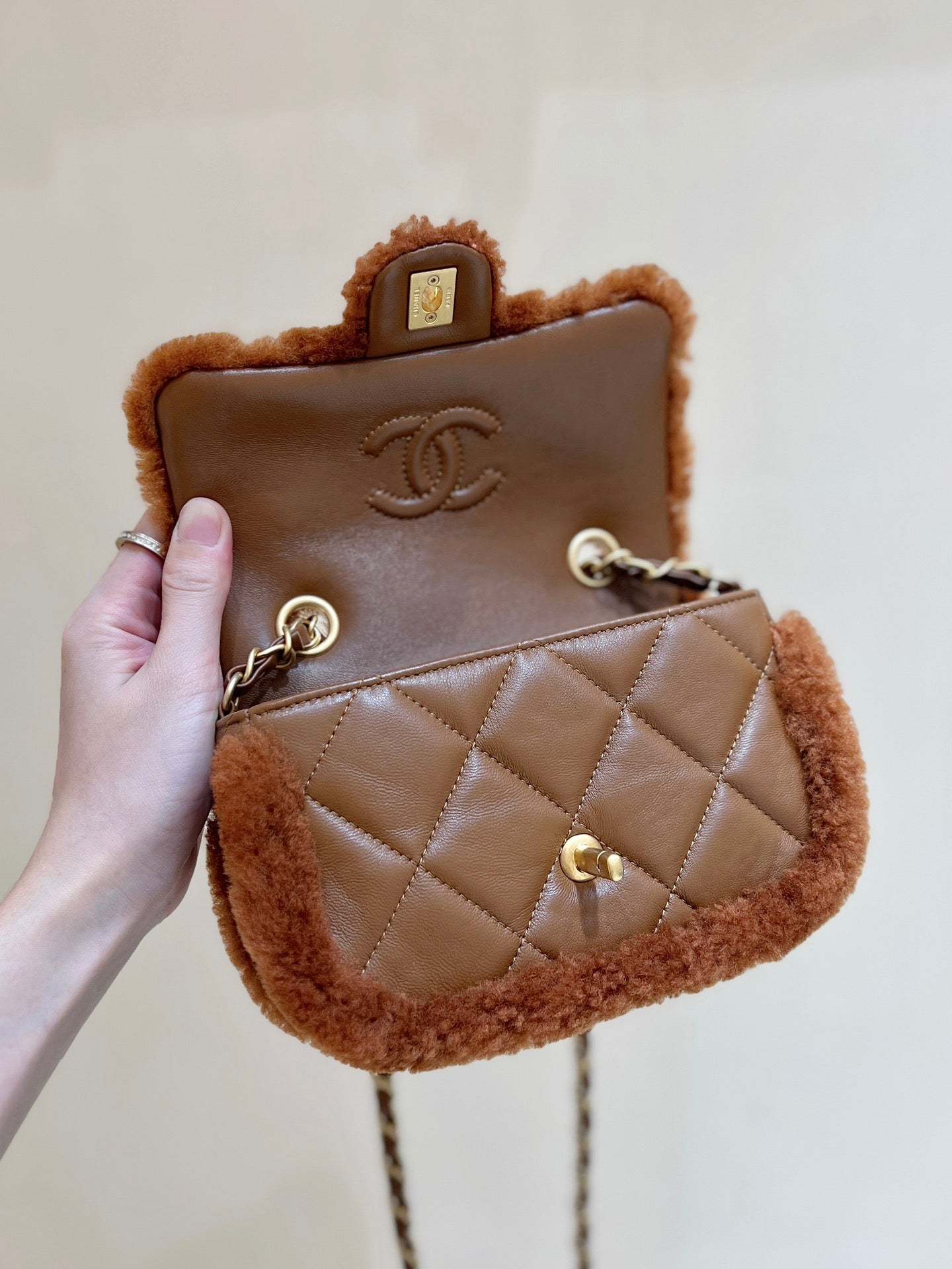 CC 24K Teddy Bear CF 18 cm Brown Lambskin & Fur Light GHW
