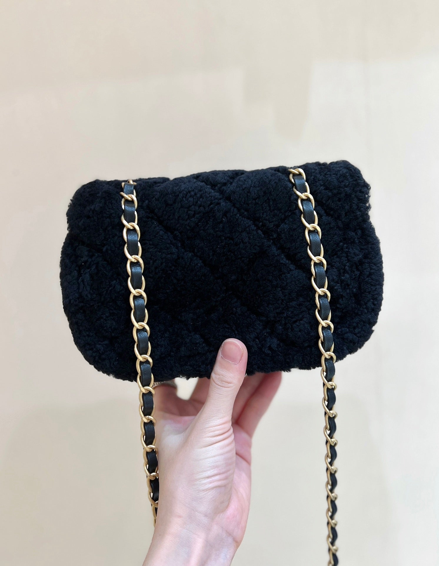 CC 24K Teddy Bear CF 18 cm Black Lambskin & Fur Light GHW