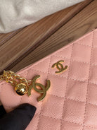 cc zipped wallet 14cm light pink caviar gold hardware