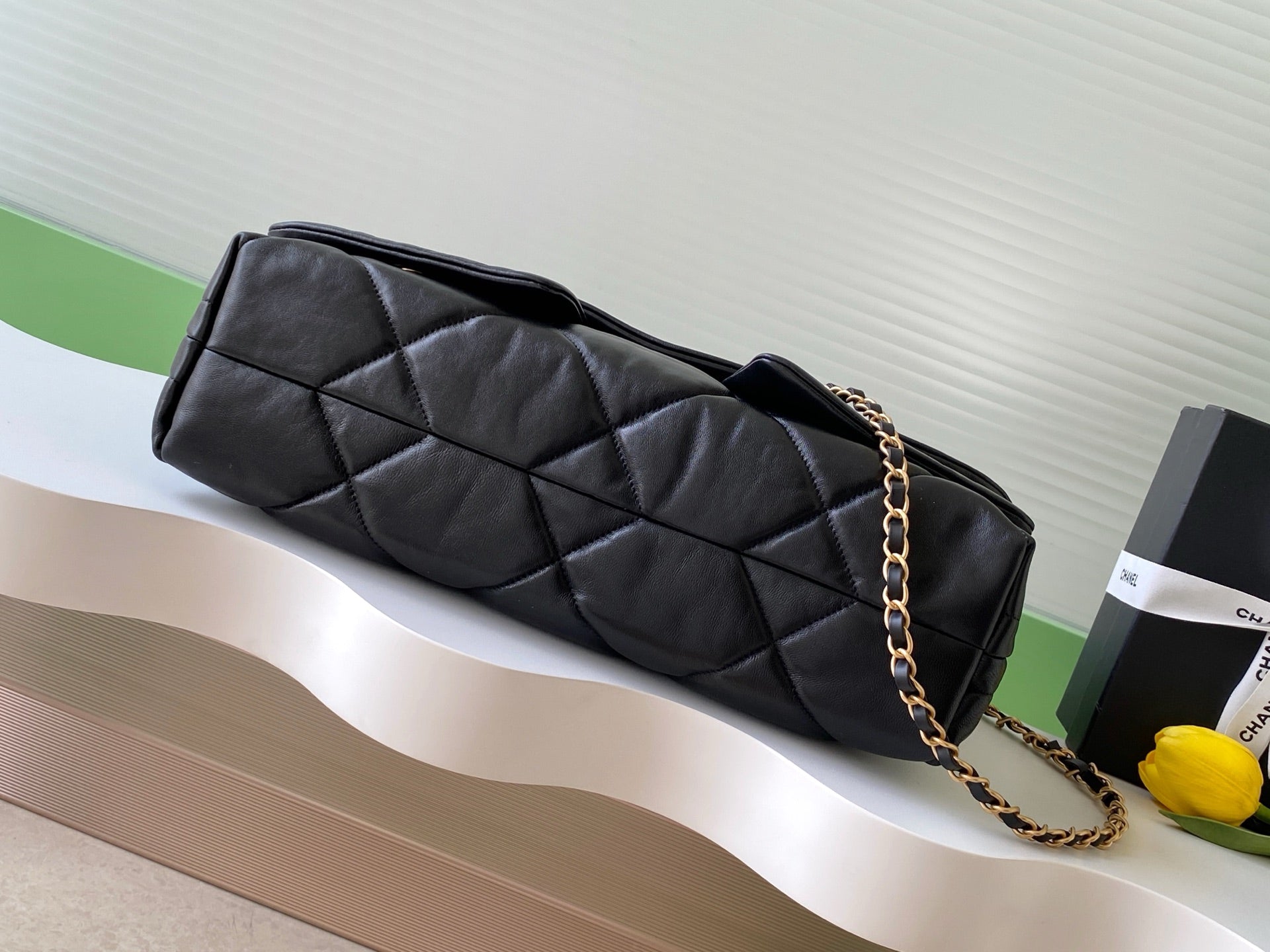Chanel 25K Bag 45cm Black Gold Sheepskin 293990