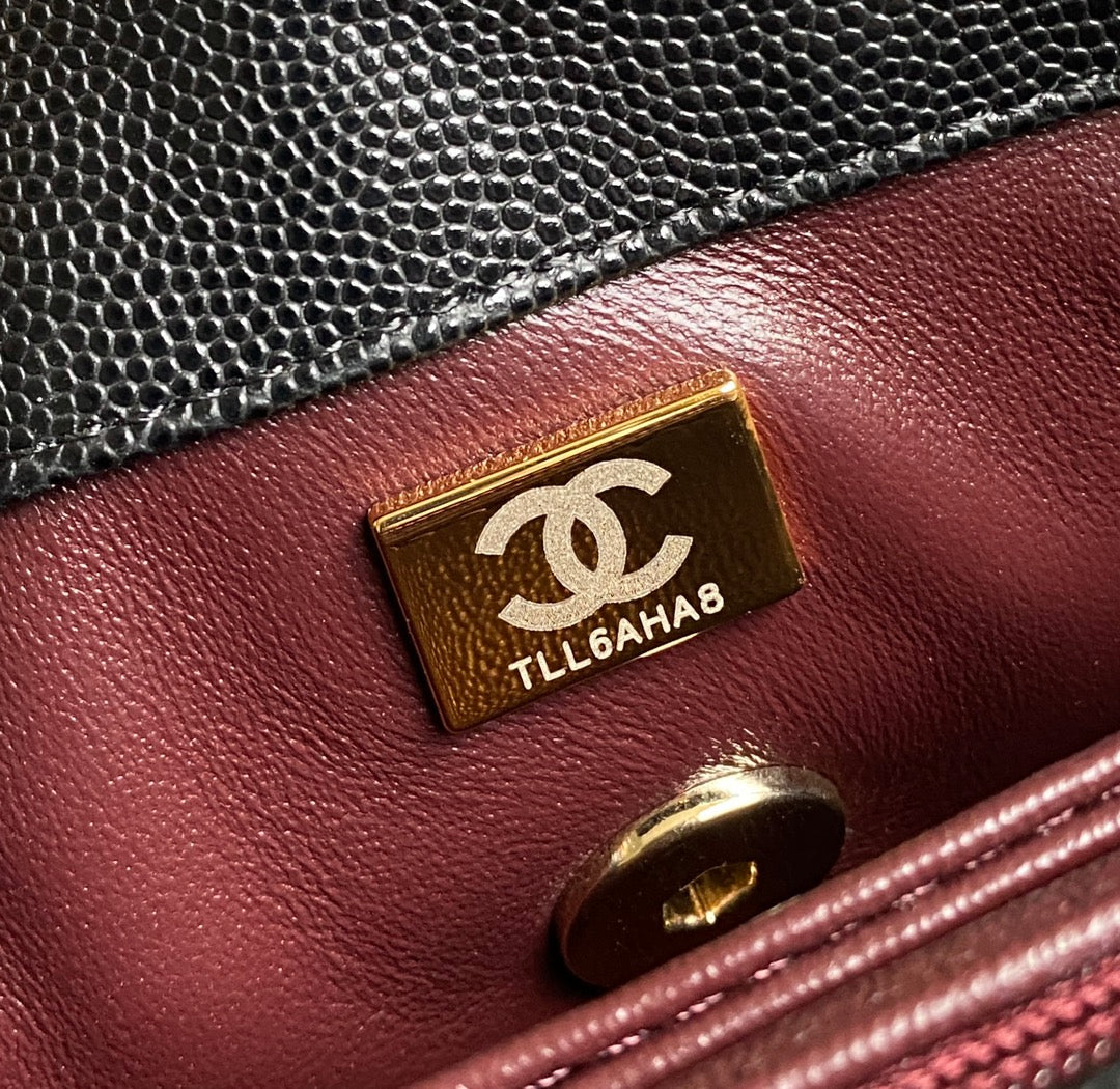 coco handle flap bag 23cm black quilted caviar with dark red top handle