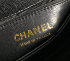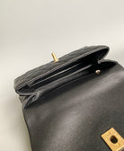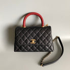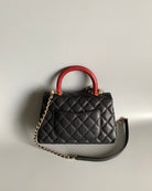 coco handle flap bag 23cm black quilted caviar with red top handle