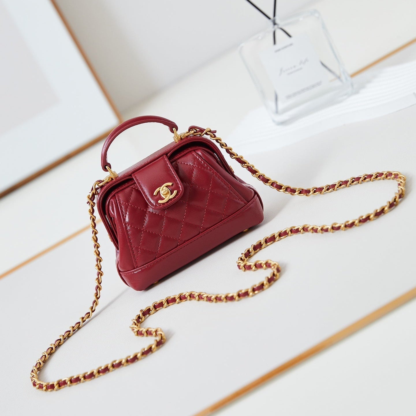 CC Flap Bag With Top Handle 25cm Wine Red Sheepskin Gold Hardware 238481