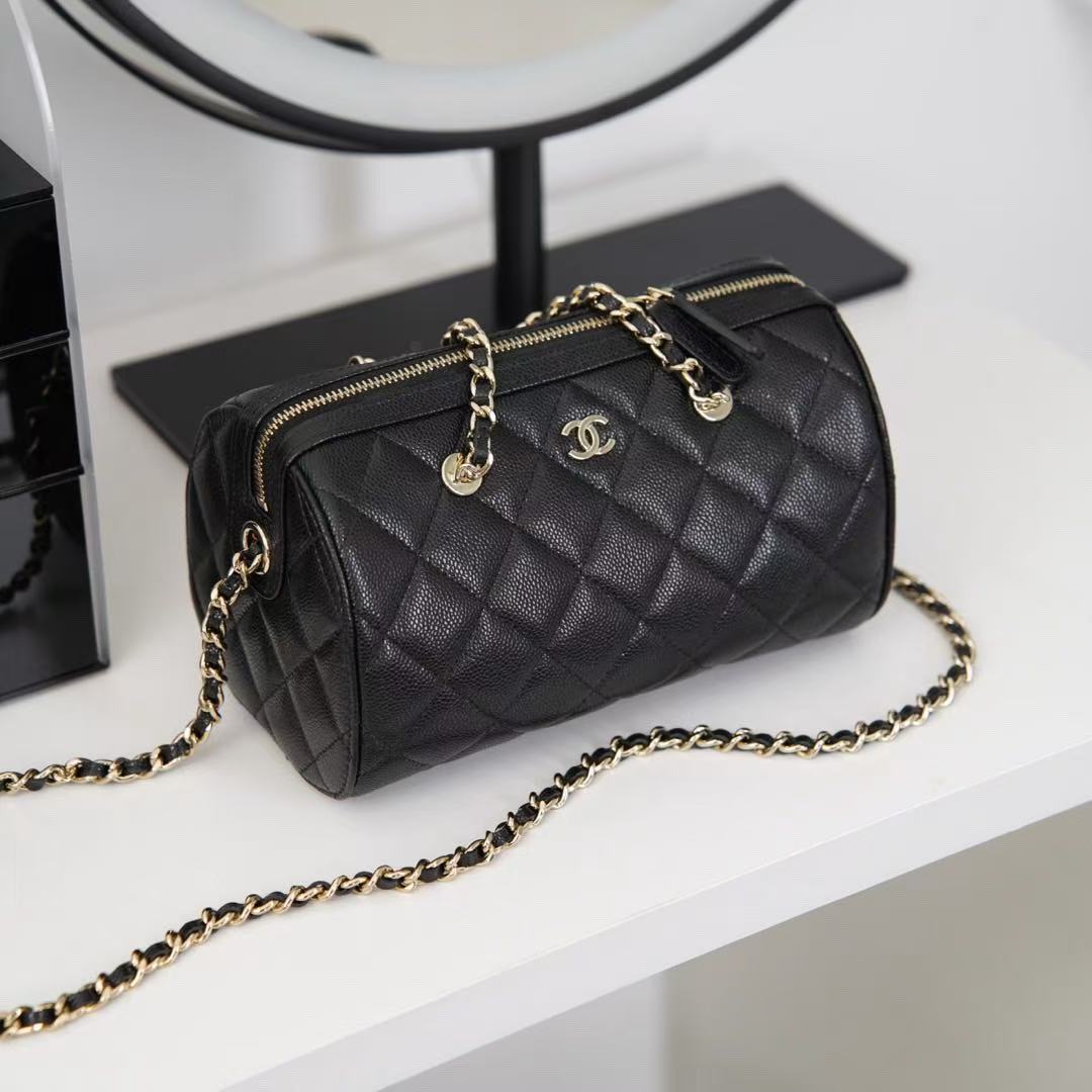 Chanel 25K Bowling Bag Black Gold Sheepskin 294981