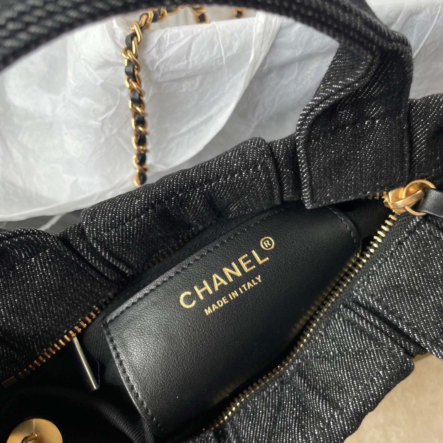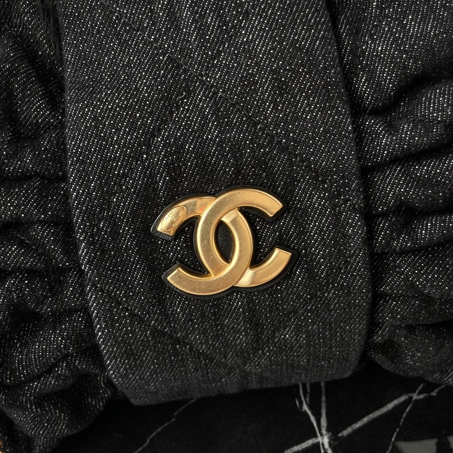 Chanel 25K Bow Bag Dark Gray Gold Denim Leather 295188